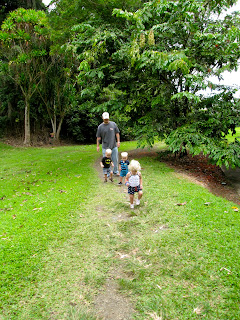 We take the babies to feed the ducks most Sunday mornings. We started this when they were really young and none of them could walk. Slowly, one by one, everyone learned to walk. We've been using our wagon to haul the babies down to the pond about a half a mile up and down hills. It can be quite a walk pulling 60lbs of babies (plus the weight of the wagon.) Once the wagon got to be too much we tried the double and single strollers, but that was exhausting as well. Today though, we decided it was time they try to walk to the pond on their own. Sure, it took a lot longer than usual, but the kids had so much fun running all over the place and exploring the area. Once we got down to the ducks Kevin began feeding them as usual. Suddenly though, the babies decided they wanted to feed the ducks themselves. It was so neat! They are growing up so fast! Sure, they would take a bite of bread/cereal and then toss some to the ducks, but it was so neat to see how far they have come since we first started coming to the botanical gardens.